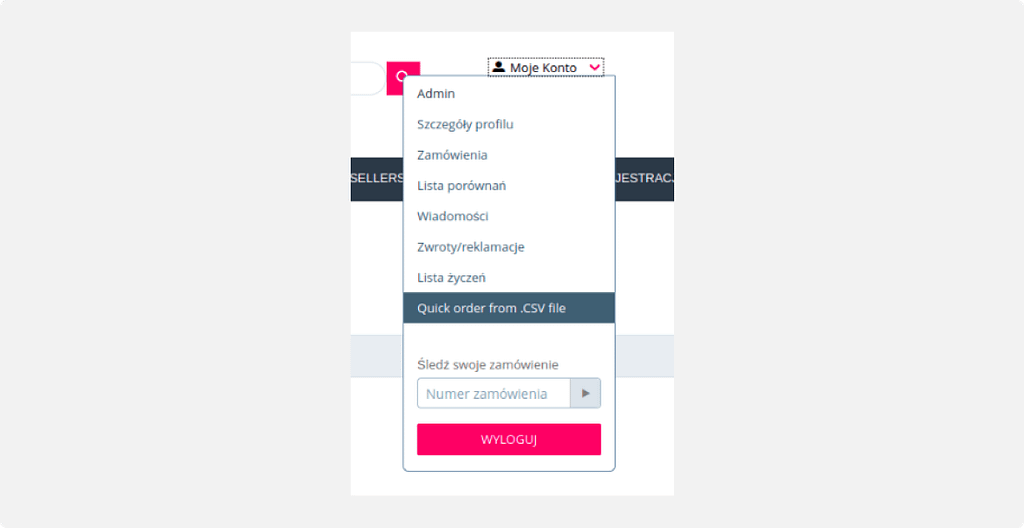 We added the default file loader to upload a CSV file on the “Quick order” page. It opens by clicking on the “Import file” button. The file contains the product quantity and code information.
