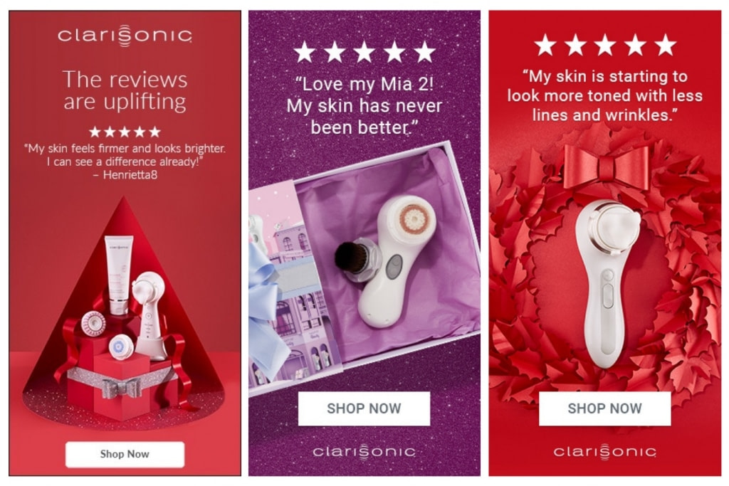 Testimonials are not just another great source of content marketing. They also help build trust with your customers by sharing some of your best success stories. So, if you have them, why not use some for your banners? You can tell a simple story through a testimonial short message and still, show your creativity in all the other elements of the online store banners like Clarisonic did.