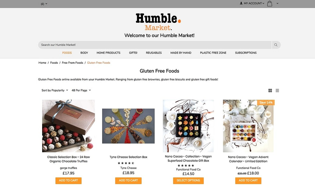Check out the clean look and feel of the Humble Market marketplace at humblemarket.co.uk.