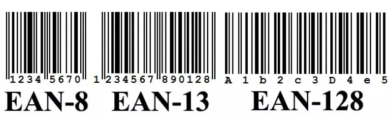- EAN — a European standard compatible with UPC, but more common outside North America. The most used format is EAN-13 (13 digits).