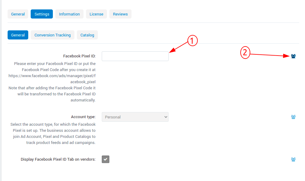 Display Facebook Pixel ID Tab on vendors—If enabled, Facebook Pixel ID tab will be available for vendors.