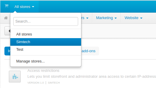 To apply the same Facebook Pixel identifier for all the storefronts, please choose all stores, go to Add-ons – Manage add-ons – Facebook Pixel, click the blue icon and insert the pixel code.
