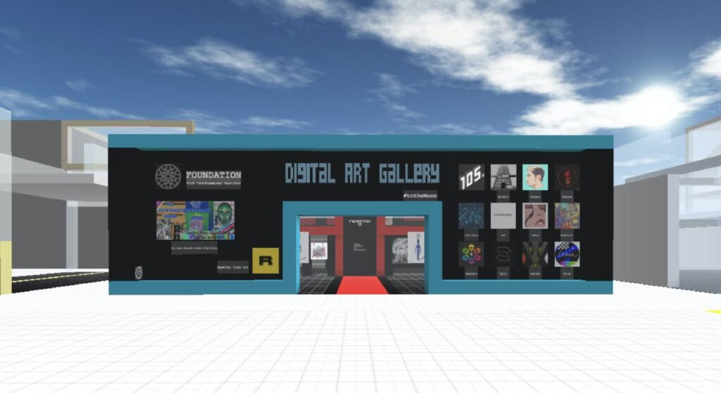 You can find both private exhibitions and exhibition centers. For example, galleries of popular NFT marketplaces such as Super Rare, Known Origin, and Makers Place have been built in Decentraland. And in Cryptovoxels, the most popular places built by independent artists are Pure Gold Gallery, Panda Gallery and BCA gallery. You can click on all the paintings and go to the marketplace to learn more or buy.