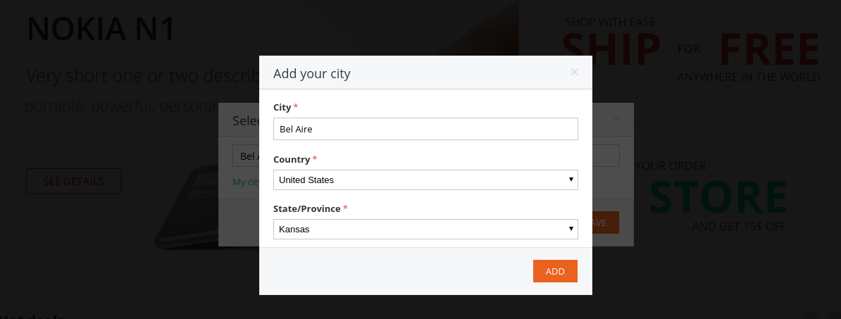 Then the user will be offered to enter the Country and State/Province for the city and click Add.