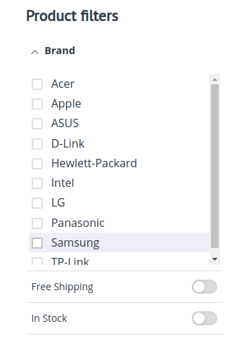 Sometimes, users prefer to search for a product in several categories at the same time. To avoid manual filtering, configure this option. Allow them to tick in several checkboxes to configure their search results and finetune selection.