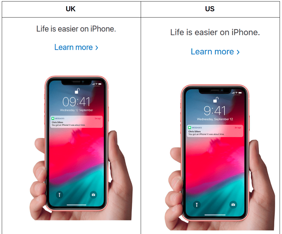 Take a glance at the images below. These screenshots were taken from Apple’s UK and U.S. websites.