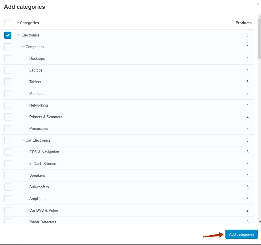 Here, you can add products and categories this template should be applied for. Simply click Add condition, choose categories or products, then click Add categories or Add product and select the desired ones.