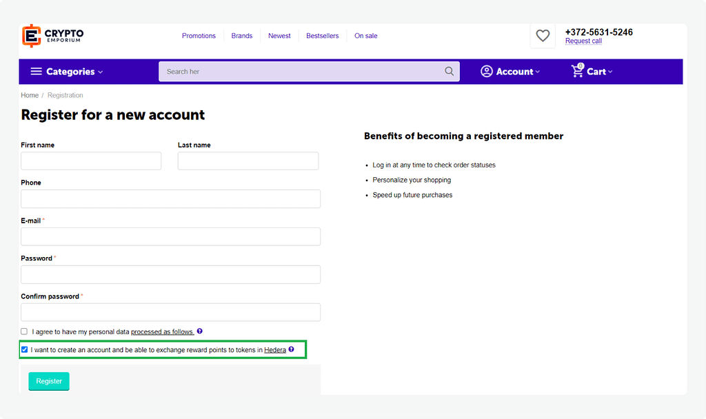 If the setting is checked and the Register button is clicked by the customer, a request is sent to the Hedera service to create a new account in its system. We introduced an additional check to see if the customer’s email has already had the connected account in the Hedera service.