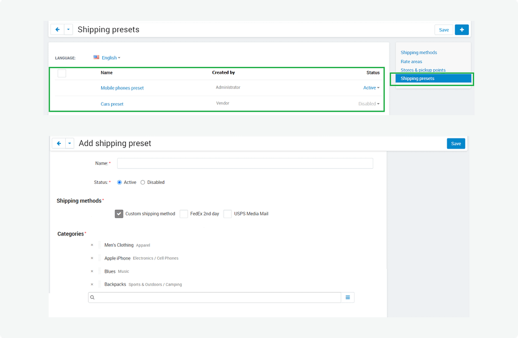We developed new Shipping presets for categories to extend the ability to assign single shipping or shipping presets to product categories. Presets allowed creating the required bundle of conditions assigned to a category. They are just like templates that remove the need to recreate the same conditions again and again saving your time.