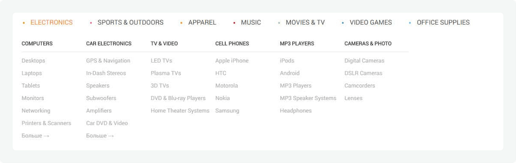 The previous menu was unattractive and unhandy for customers, with megamenu we solved the problem of navigation. Its simple design with a minimal look do not confuse customers and focus attention on the product categories.
