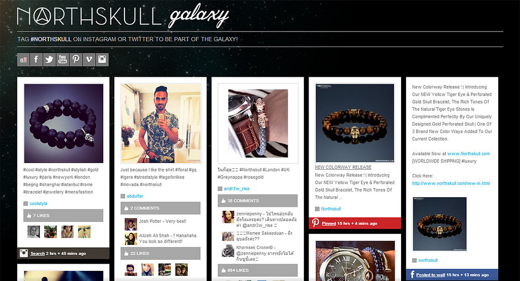 Special attention is given to social networks. In a common window, we integrated a system of displaying posts in which the brand is mentioned in social media. As a result, we produced Northskull Galaxy. A ready-to-use solution Social Stream was used for Northskull Galaxy. We integrated the add-on into the online store and added all the necessary settings so that the administrator can successfully manage all displayed posts and their sources.