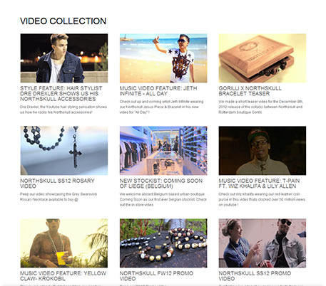 An automatic loading of videos from the Northskull YouTube channel occurs in the Video section. When played, a video is loaded in a pop-up window.