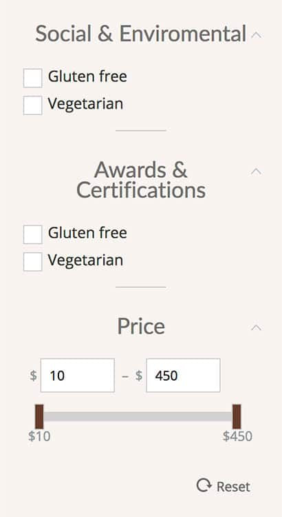 To help customers do the search by occasion or dietary preferences products were organized by main categories and subcategories. We also added dynamic filters.