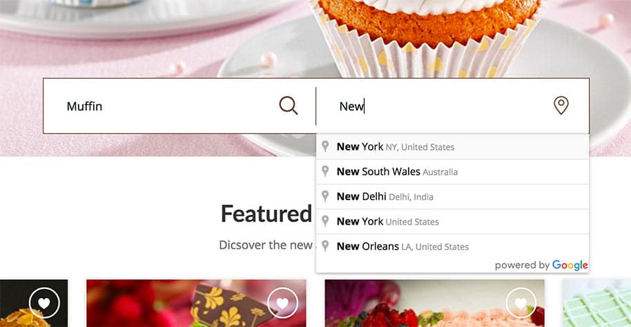 And if the customer wants to search a bakery by geographical location there is a fast search form on homepage and on each product page. You start typing in a location and choose from provided variants.
