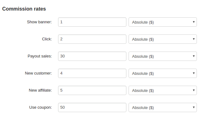 You can also specify commission rates for showing a banner, clicking on it, attracting a new customer, etc.